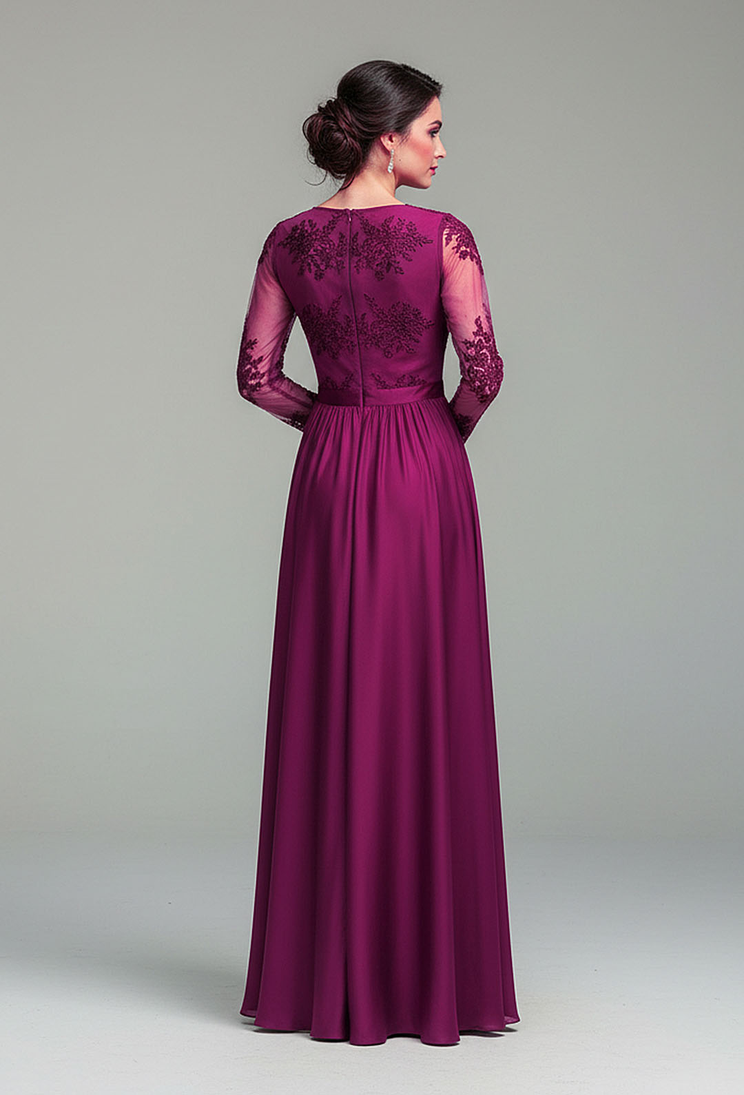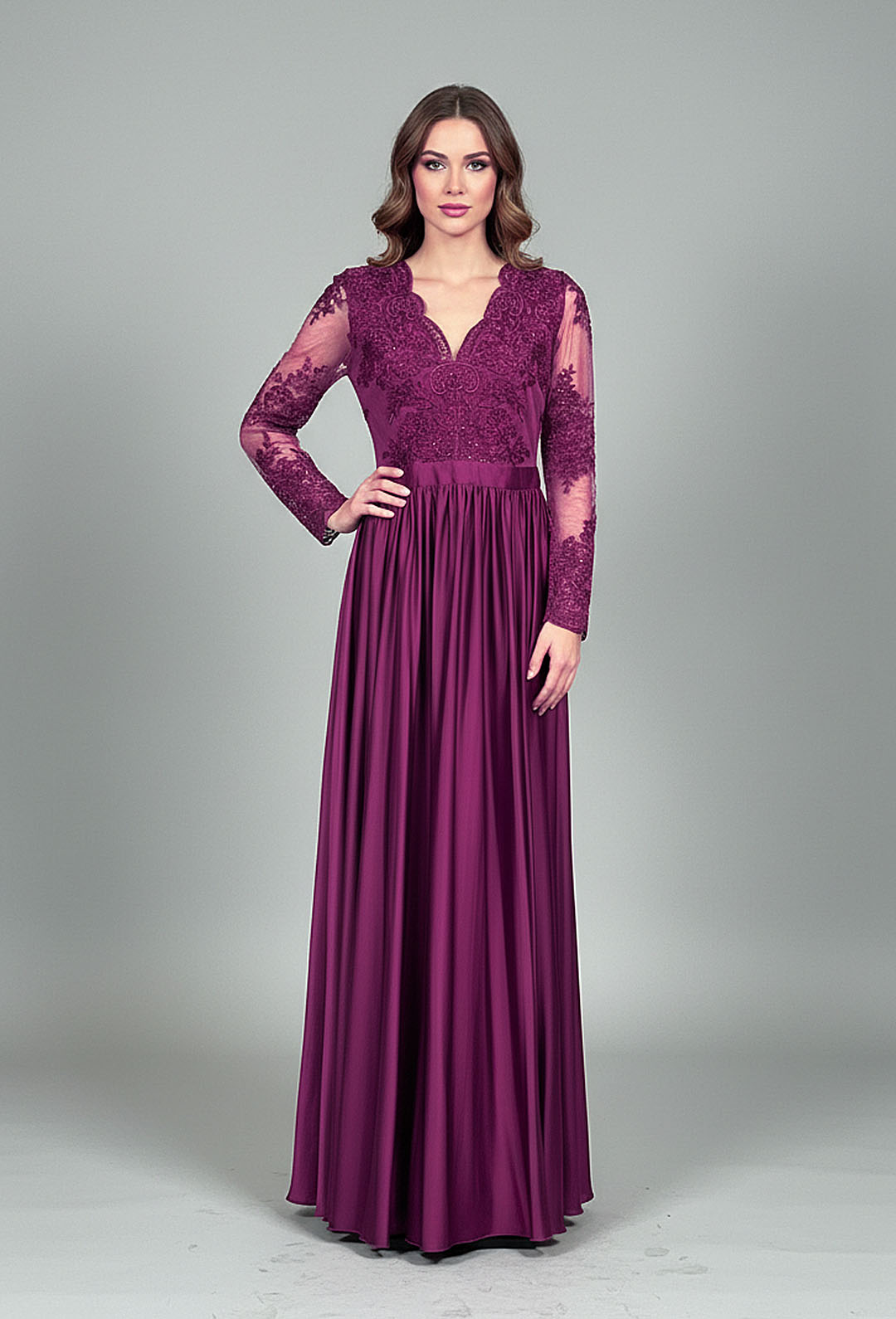 L’abito lungo elegante con corpino in tulle ricamato, fascia in vita e ampia gonna in tessuto velato con spacco è un capo d’abbigliamento femminile raffinato e di classe. Grazie alla sua linea elegante e alla sua sobrietà, è perfetto per le occasioni più importanti e per le serate di gala. Il tessuto velato dona un tocco di leggerezza e di movimento alla gonna, mentre il corpino in tulle ricamato aggiunge un dettaglio di stile che rende questo abito unico e inimitabile. Le maniche lunghe rendono questo abito adatto anche alle serate più fresche, mentre la mancanza di coppe e il tessuto non elasticizzato lo rendono comodo e adattabile a qualsiasi fisico. Le circonferenza della parte più larga del braccio è in media 34cm(LUNA)