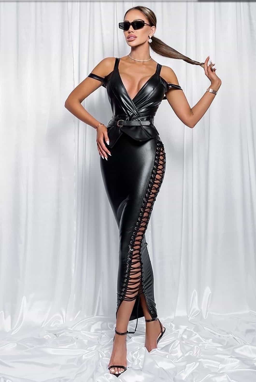 Look sofisticato con questo abito lungo in morbida ecopelle. I laccetti regolabili consentono di adattare l’abito alle tue esigenze, creando un look personalizzato. La cintura alta inclusa accentua la tua vita e definisce la tua figura. Il tessuto leggermente elasticizzato garantisce comfort e flessibilità per tutta la serata.