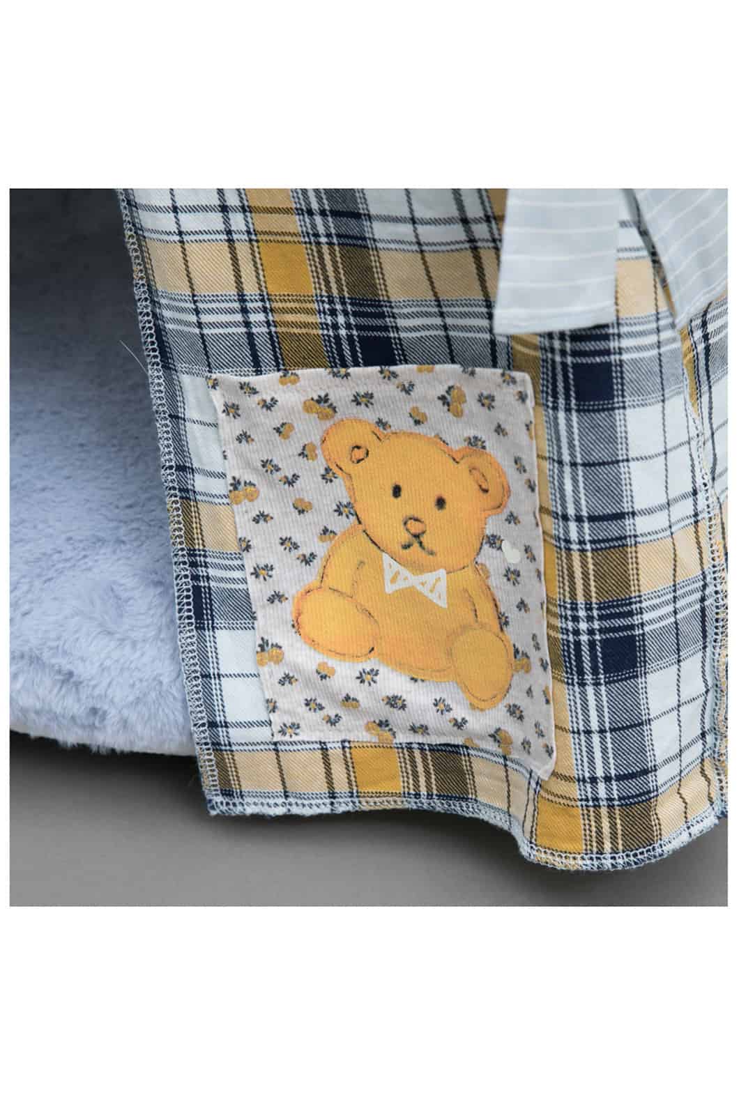 Dispone di nastro in pizzo a rete e nastro di seta italiana e Patchwork Honey Bear applicato sulla facciata