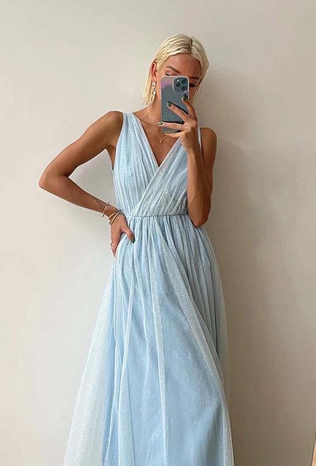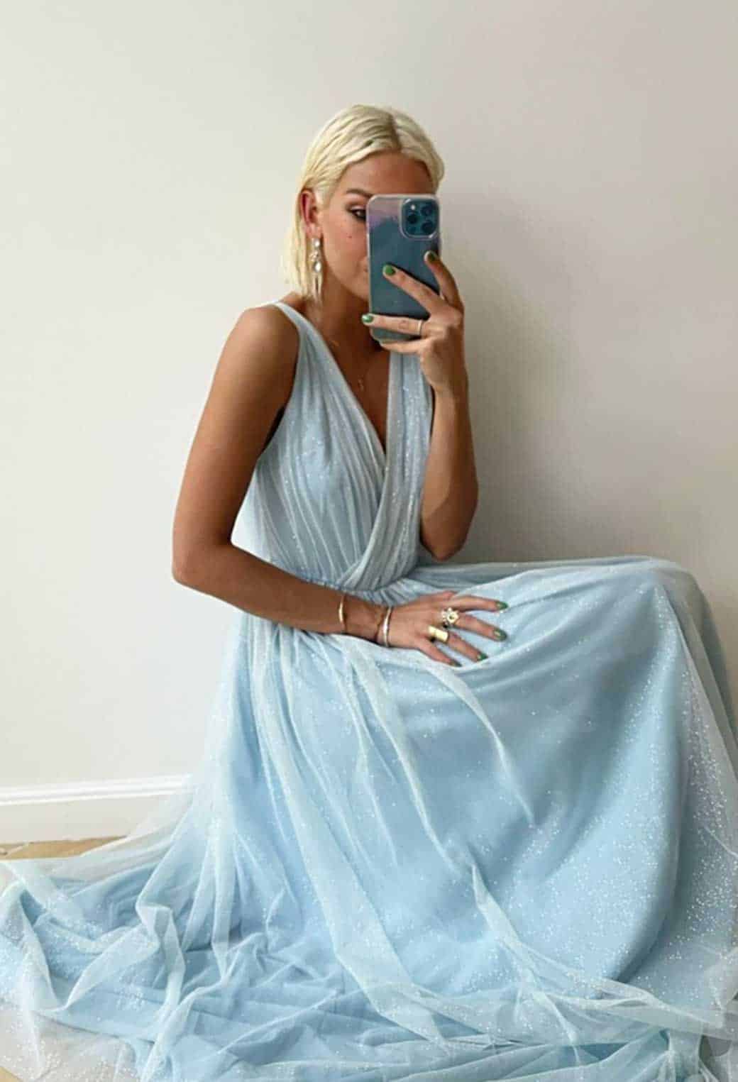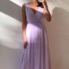 Elegante abito in tulle con gonna svasata , cerniera posteriore, punto vita rigido.