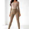 Pantaleggings in ciniglia elasticizzata beige chiaro ( effetto push-up) , modello a vita alta
