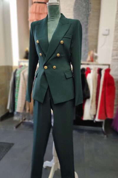 Ridisegna i canoni del tuo guardaroba professionale e da cerimonia con il nostro nuovo tailleur elegante. La splendida giacca a doppiopetto è caratterizzata da revers classici e affilati che incorniciano il décolleté con estrema precisione. Il design è impreziosito da una serie di bottoni oro a contrasto, che richiamano lo stile iconico della moda navy e aggiungono un punto luce prezioso che sostituisce la necessità di accessori appariscenti. Il pantalone in taglio pencil completa la silhouette, seguendo la linea della gamba in modo pulito e slanciato per un effetto visivo di estrema eleganza. Realizzato in un tessuto di alta qualità rigorosamente NON ELASTICIZZATO, il capo assicura una struttura solida e formale che mantiene la piega e la forma originale per tutto il giorno